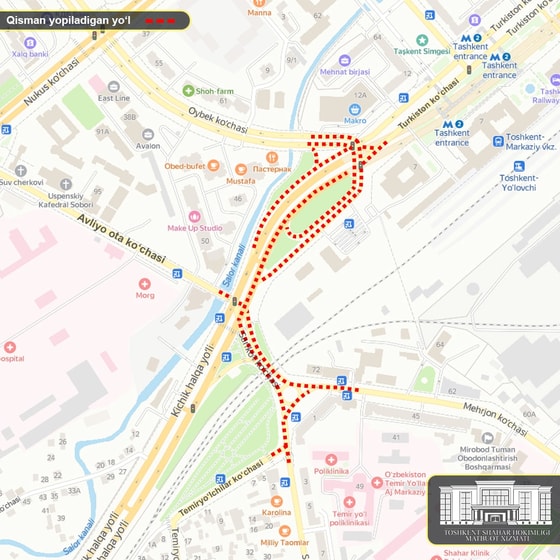 - пересечение Малой кольцевой автодороги и улицы Авлиё ота;