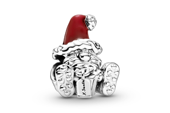 Шарм в виде сидящего Санта-Клауса в большой шапке, который присел, чтобы завязать бант на самом большом подарке для вас в этом году. Шапка украшена алой эмалью, на подошве обуви видны сердечки, а на бирке подарка выгравировано «X Santa». Хо-хо-хо!