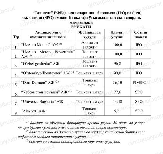 В сентябре 2020 года UzAuto объявило конкурс по организации проведения первичного публичного предложения акций. Компания искала инвестиционного посредника, который займется процессом.