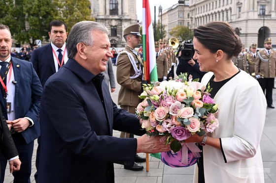 Шавкат Мирзиёев и глава Венгрии Каталин Новак поприветствовали членов делегаций.