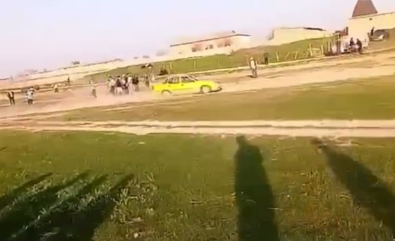 Судя по видео, мужчина за рулем Nexia совершал опасные маневры и пытался сбить людей на школьном поле.