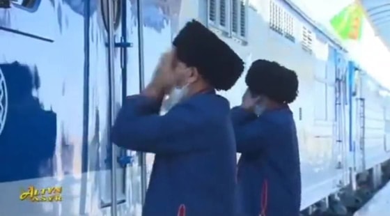 Прибытие новых локомотивов было встречено согласно исконным национальным традициям и обычаям, неотъемлемыми атрибутами которых являются осыпание мукой, завязывание оберега-аладжа.
