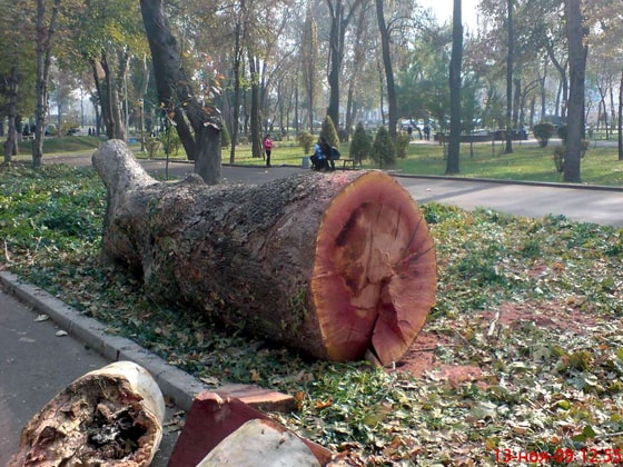 Однако несмотря на введенный запрет, граждане систематически нарушают его. Так, 18 ноября сообщалось, что в Чиланзарском районе Ташкента на аллее Гагарина срубили многолетнюю чинару, объяснив это тем, что дерево стало сухим и жители подавали заявку на его спил.