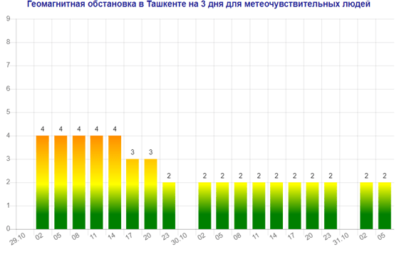 Сегодня (29 октября) в Ташкенте наблюдается магнитная буря мощностью четыре балла, следует из данных сервиса Meteonova.
