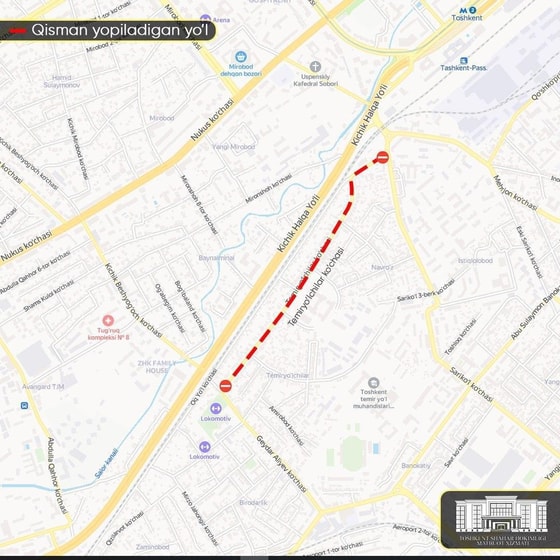 10 июня в Ташкенте с 8:00 на два дня частично закроют улицу Гейдара Алиева (Темирйулчилар), пишет пресс-служба столичной администрации.