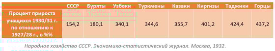 Относительно того, что «период Советского Союза был проблематичным для развития национальностей». Алишер Кадыров, наверное, не в курсе, что перед Октябрьской революцией население Средней Азии (царском Туркестанском генерал-губернаторстве) почти поголовно было неграмотно (грамотных было 2-3 процента), но уже в 1931 году в Узбекской ССР было 25,1 % грамотного населения.