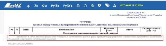 27 октября 2020 года был принят указ президента № УП-6096 «О мерах по ускоренному реформированию предприятий с участием государства и приватизации государственных активов».