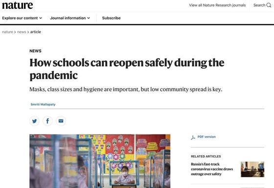 Nature: «How schools can reopen safely during the pandemic»