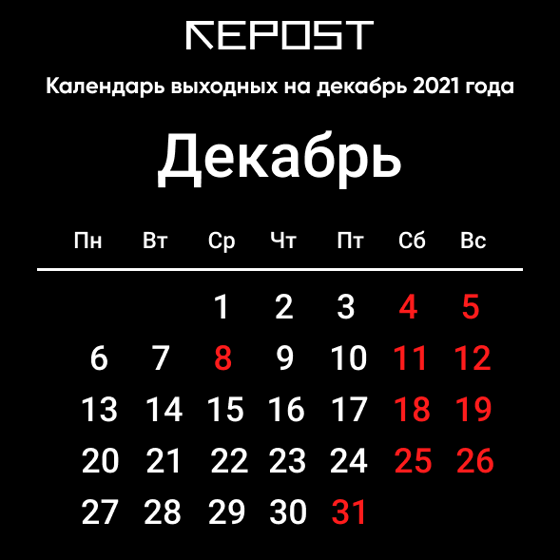 Согласно указу президента, в декабре установлено два выходных - 8 и 31 декабря.