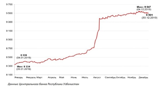 Мы помним, как в июле-августе 2019 года курс сума девальвировался на 10,2 процента. Причина – влияние снижения курса национальных валют отдельных стран — основных торговых партнёров нашей страны.
