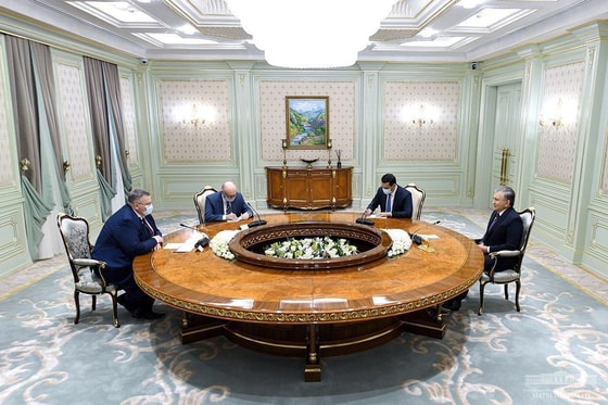 Зампредседателя правительства России Алексей Оверчук поблагодарил лидера Узбекистана за возможность проведения встречи и передал приветствия и наилучшие пожелания от имени Владимира Путина и председателя правительства Михаила Мишустина.