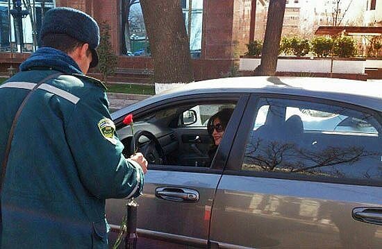 В Международный женский день сотрудники УБДД города Ташкента поздравляют женщин-водителей розами и плитками шоколада. Об этом сообщили в пресс-службе ГУВД Ташкента, опубликовав ролик, на котором запечатлены сотрудники УБДД, останавливающие женщин-водителей ради поздравлений.