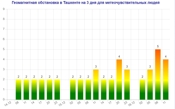 Послезавтра (16 декабря) в Ташкенте ожидается магнитная буря мощностью пять баллов, следует из данных сервиса Meteonova.