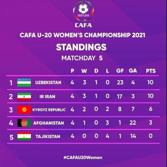 Сборная Узбекистана выиграла 3 игры из четырех и сыграла вничью с иранской командой. Всего узбекские футболистки забили 23 мяча в ворота соперниц и пропустили 4.