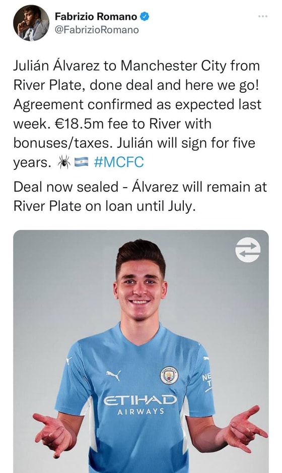 Альварес подпишет контракт на 5 лет. Сумма трансфера составит 18,5 млн евро + бонусы. Об этом сообщил Фабрицио Романо в своем Twitter.