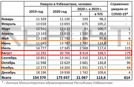 Но вот выходит доклад Узстата «Демографическая ситуация в Республике Узбекистан за январь-декабрь 2020 года» и там – о, чудо! – приведены данные о смертности по состоянию на 1 января 2021 года.