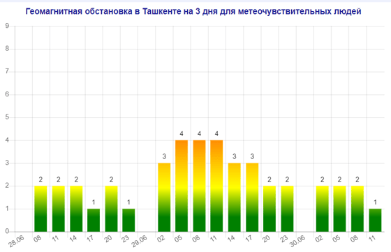 Завтра (29 июня) в Ташкенте будет наблюдаться магнитная буря мощностью четыре балла, следует из данных сервиса Meteonova.