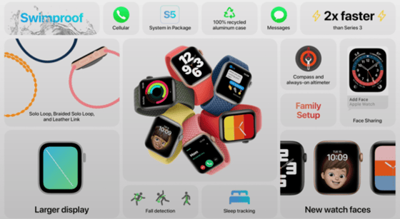 Наряду с Series 6, компания также представлена бюджетную версию смарт-часов Apple Watch SE. Они будут оснащены процессором от пятого поколения смарт-часов, при этом снабжены всеми датчиками от часов нового поколения. Новинка будет предлагаться для покупки от $279 долларов и будет лишена датчика уровня кислорода в крови.