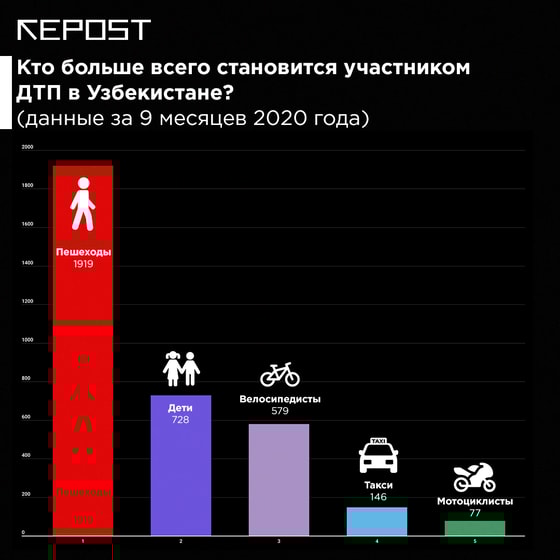 По данным ГУБДД, за 9 месяцев 2020 года в Узбекистане было совершено более 3,2 млн нарушений ПДД. Repost выяснил основные причины возникновения дорожно-транспортных происшествий в Узбекистане.