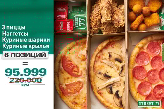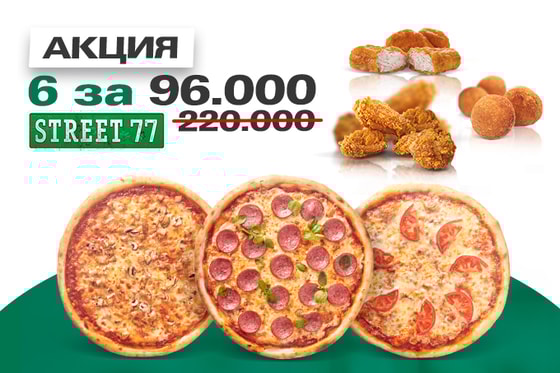 Акция действует во всех заведениях сети Street 77, а так же на доставку и на вынос.