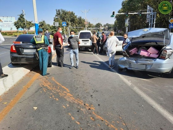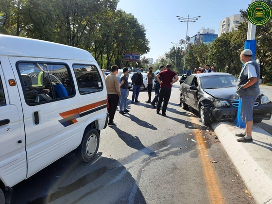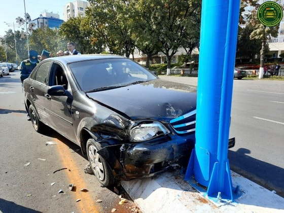 Не подчинившись требованию сотрудника ДПС продолжил движение и на высокой скорости врезался в столб освещения, протаранив шесть автомобилей: Matiz, Cobalt, Hyundai, Nexia, Spark и Damas.