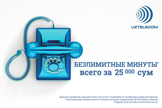 С безлимитным тарифным планом телефонии по доступным ценам вы можете не волноваться о том, что минуты или деньги на вашем счету могут закончится. UZTELECOM предлагает уникальный безлимитный тарифный план по фиксированной телефонии стоимостью всего 40 тысяч сумов в месяц. Решайте вопросы развития бизнеса, не думая о минутах и ограничениях.