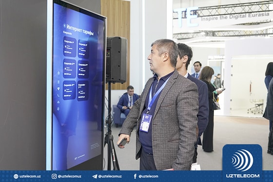 В частности, стенд UZTELECOM был разделен на несколько интерактивных зон, где гости ознакомились со всеми услугами, оказываемыми компанией. На первом этаже стенда UZTELECOM распологались зоны самообслуживания, интерактивной виртуальной реальности, презентации продуктов компании, включая облачные сервисы, ОТТ-платформы, а также зона подключения к услугам. На втором этаже были созданы условия для проведения важных переговоров и встреч.