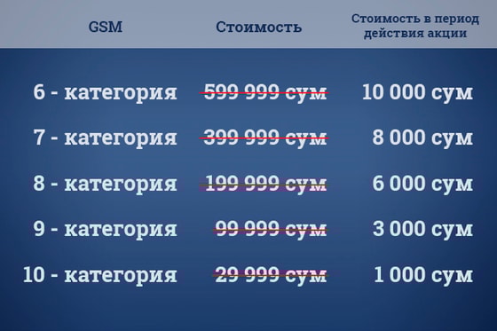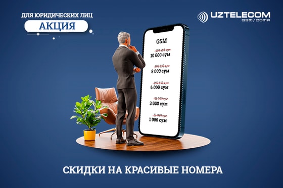 Национальный оператор не устает радовать и привносить удобства для своих корпоративных клиентов и предлагает приятное жаркое дополнение - скидочную акцию «Красивые номера» в период с 17 июня по 17 июля 2021 года. Согласно условиям акции, в вышеуказанный период «красивые номера» для юридических абонентов будут доступны за цены от 1 000 до 10 000 сумов. Участниками акции могут стать юридические абоненты, обслуживающиеся на тарифных планах «Business Royal», «Milliy Biznes 40», «Milliy Biznes 55», «Milliy Biznes 75».