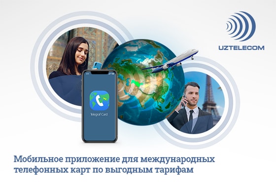 Специально для удобства абонентов специалисты Компании разработали мобильное приложение Telegraf Card, установив которое пользователи — владельцы обычных банковских пластиковых карт получают возможность приобретать и производить пополнение счёта по серийному номеру международных телефонных карт «Центральный Телеграф» и UZTELECOM, получать полную информацию о проведенной оплате, а также управлять карточками. Удобно, выгодно и современно.