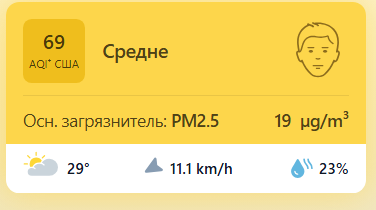 В 09:00 станция мониторинга в столице Узбекистана показывала результат в 69 AQI. Концентрация PM2.5 — в 3,8 раза выше рекомендуемого ВОЗ среднегодового значения качества воздуха.