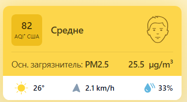 В 09:05 станция мониторинга в столице Узбекистана показывала результат в 82 AQI. Концентрация PM2.5 — в 5,1 раза выше рекомендуемого ВОЗ среднегодового значения качества воздуха.