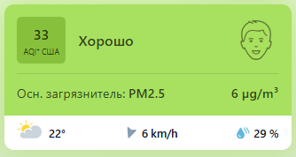В 10:55 станция мониторинга в столице Узбекистана показывала результат в 33 AQI. Концентрация PM2.5 — в 1,2 раза выше рекомендуемого ВОЗ среднегодового значения качества воздуха.