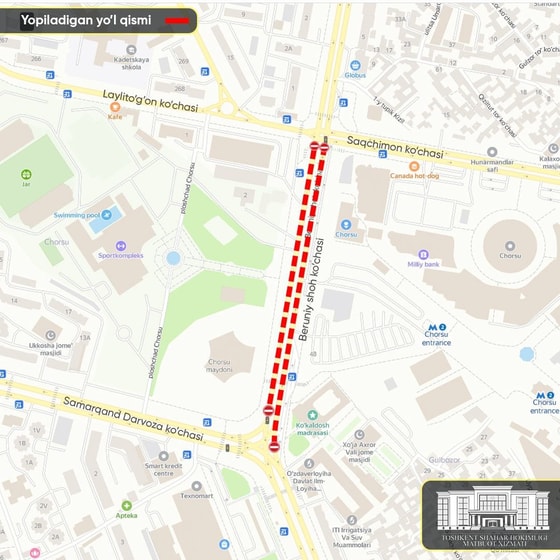 Одну из улиц Ташкента перекроют на четыре дня — карта