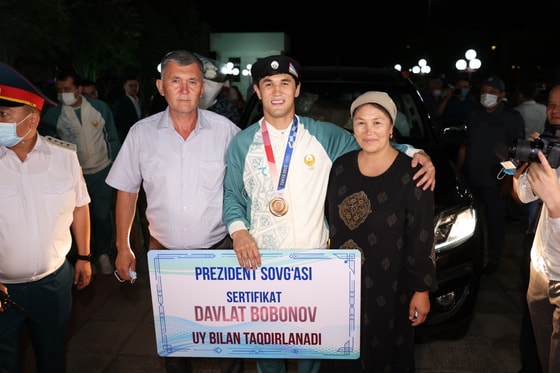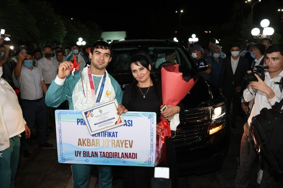 Бронзовые призеры Давлат Бобонов (дзюдо) и Бекзод Абдурахманов (вольная борьба) получили сертификаты на 50 тысяч долларов, автомобили Trailblazer и 2-х комнатные квартиры.