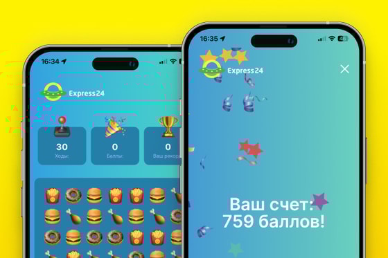 Как показывает опыт ведущих компаний электронной коммерции, интеграция геймификации в приложениях является успешным инструментом для вовлечения пользователей и улучшения клиентского опыта. Соответственно, команда Express24 решила поэкспериментировать с игровыми механиками и добавила небольшую мини-игру по типу «таймкиллер» в приложение. Главные цели этой интеграции — сделать время ожидания увлекательным и сформировать положительную ассоциацию между брендом и приятным процессом заказа еды. Переход к игре внутри приложения происходит легко, сразу после подтверждения заказа.