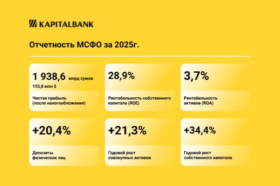 Итоги 2025 года подтверждают устойчивость нашей бизнес-модели и эффективность выбранной стратегии развития. Рост ключевых финансовых показателей, сохранение высокой рентабельности и контролируемый уровень кредитных рисков являются результатом системной работы по укреплению капитала, повышению операционной дисциплины и технологической модернизации банка. Для нас принципиально важно не просто демонстрировать рост, а сохранять финансовую устойчивость и высокие стандарты корпоративного управления. Мы рассматриваем это как вклад не только в развитие банка, но и в укрепление стабильности банковской системы и экономики Узбекистана в целом, — отметил Кирилл Маевский, председатель правления Капиталбанка.