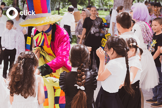 Каждый год Click утраивает и благотворительные мероприятия, в этом году компания купила инвалидные коляски для воспитанников специализированной школы №36. А так же ноутбуки и музыкальные инструменты для специализированной школы №77.