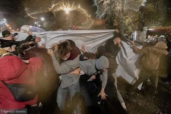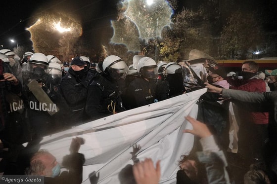 По данным агенства, несмотря на запрет массовых собраний в Варшаве более 10 человек в связи с острой фазой пандемии коронавируса, накануне вечером на улицы Варшавы вышли сотни людей, протестуя против решения КС и властей страны.