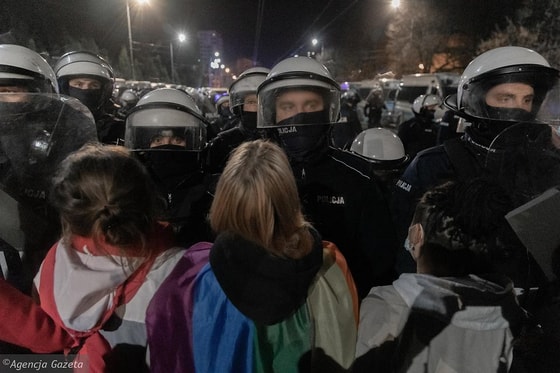 Полиция через громкоговорители информировала о том, что массовое собрание является незаконным в связи с необходимостью соблюдать санитарно-эпидемиологические нормы. Демонстранты не разошлись, а приняли решение пойти колонной под партийный офис правящей партии «Право и Справедливость» (PiS). Около 23 часов несколько манифестантов прибыли в офис PiS на улице Новогродская. Полиция продолжала информировать, что собрание является незаконным, однако манифестанты, которые прибывали, решили идти пикетировать дом, где живет Качинский. Сотни манифестантов с антиправительственными лозунгами преодолев более 5 км после полуночи пришли к улице, где живет Качинский. Там дорогу им преградил кордон полиции, силовики через громкоговорители призывали демонстрантов разойтись. При попытках пройти дальше произошли столкновения с полицией, силовики применили против демонстрантов слезоточивый газ. Вскоре после этого протестующие разошлись, заявив о намерении собраться под домом лидера правящей партии на следующий день.