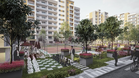 В комплексе будут созданы все необходимые условия для яркого образа жизни: по 2 лифта, 2 подземных паркинга на 940 мест, широкие и зеленые аллеи, 1,5 гектара экосада, спортивные площадки, крытый и открытый бассейны, уютная детская площадка и многое другое. Вид отсюда на столицу открывается потрясающий.
