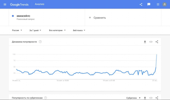 Граждане России также гуглят метапоисковик авиабилетов «Авиасейлс».