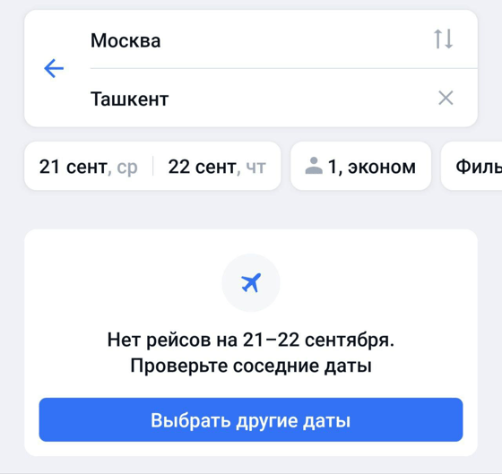 Люди раскупили все билеты по маршруту «Москва — Ташкент».