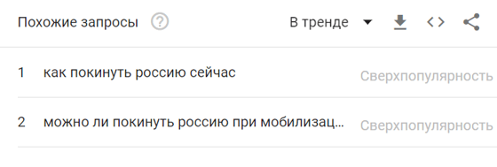 Сверхпопулярные запросы — «Как покинуть Россию сейчас» и «Можно ли покинуть Россию при мобилизации».