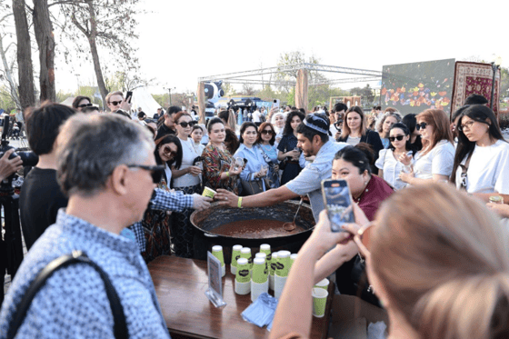 Параллельно гости пробовали сумаляк, плов от Beshqozon и угощения от национальных брендов.