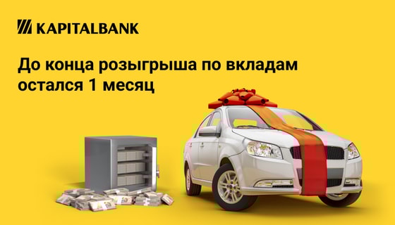Розыгрыш по вкладам «Проценты каждый день на Visa» и «Zo’r 7%» подходит к финишной прямой. До конца розыгрыша среди вкладчиков от «Капиталбанка» остался всего месяц. Еще можно получить шанс стать обладателем одного из последних двух автомобилей или шанс на выигрыш одного из 45 денежных призов до конца акции.