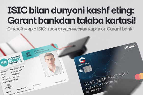 Теперь студенты Узбекистана могут оформить международную карту ISIC (International Student Identity Card) в Garant bank. Этот документ признан более чем в 130 странах мира и является универсальным подтверждением статуса студента, открывая доступ к тысячам скидок и привилегий.