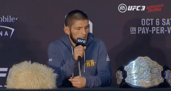 Хабиб Нурмагомедов после боя все же появился на пресс-конференции, не став отвечать на вопросы журналистов. По словам российского бойца, сразу после боя ему позвонил президент России Владимир Путин.