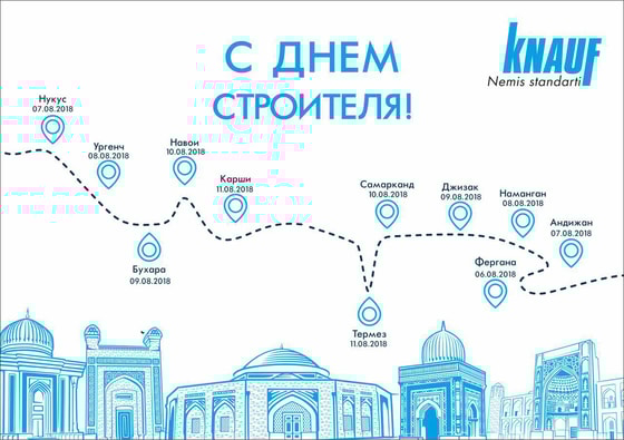 В этом году традиционно компания КНАУФ организует празднования в честь Дня работников сферы строительства во всех регионах Узбекистана. Развлекательные мероприятия пройдут в двенадцати городах республики с 6 по 12 августа 2018 года.
