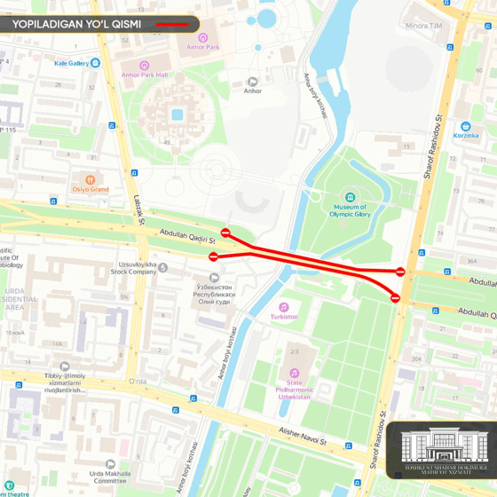 Как уточняется, специалисты будут проводить ремонтные работы. В связи с этим с 09:00 24 ноября будет перекрыт отрезок от улицы Лабзак до проспекта Шарафа Рашидова.