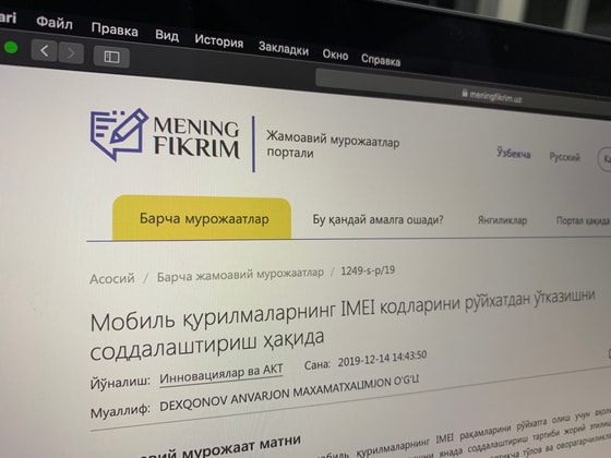 В феврале в Mening Fikrim предложили петицию об отмене платной регистрации IMEI-кодов.